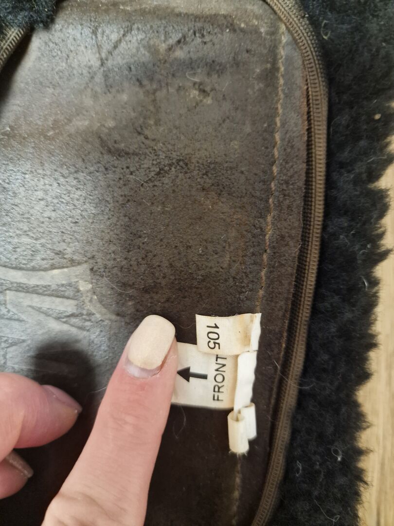 Maat: 105 Kleur bont: zwart Gespsluiting:inelastisch Leder:bruin Stijl maanvormig SLIM-LINE, de nieuwe generatie Mattes singels! Deze Mattes maansingel is platter en slanker, dus eleganter en creëert nog meer elleboogruimte incl. afneembare lamsvacht overtrek. Nieuwprijs 204 Euro.