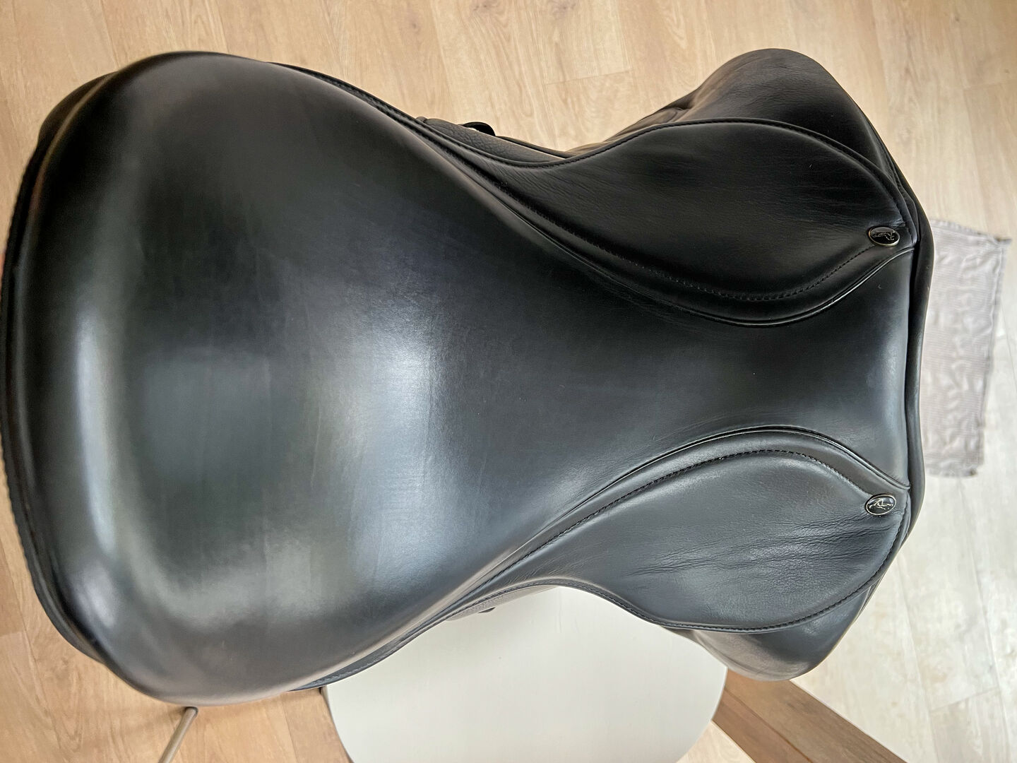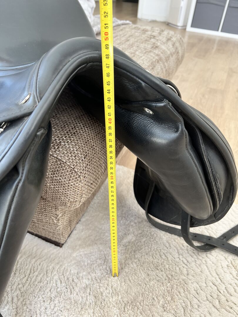 Het zadel lag op een korte, compacte Holsteiner, maar is in principe aanpasbaar aan veel verschillende paardenruggen (koud). Ik heb zelf erg lange benen en heb me altijd erg op mijn gemak gevoeld in het zadel. Het is superzacht en gewoon comfortabel. Ik heb het zadel in 2020 tweedehands gekocht en het heeft al de geoptimaliseerde zadelboom. Het werd nooit als enig zadel gebruikt, dus er was geen dagelijks gebruik. De oorspronkelijke prijs was 2400€. Het leer is van zeer hoge kwaliteit en vertoont uiteraard minimale gebruikssporen (lichte slijtage van de stijgbeugelriemen). Het zadel is altijd goed onderhouden en droog gehouden.