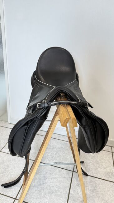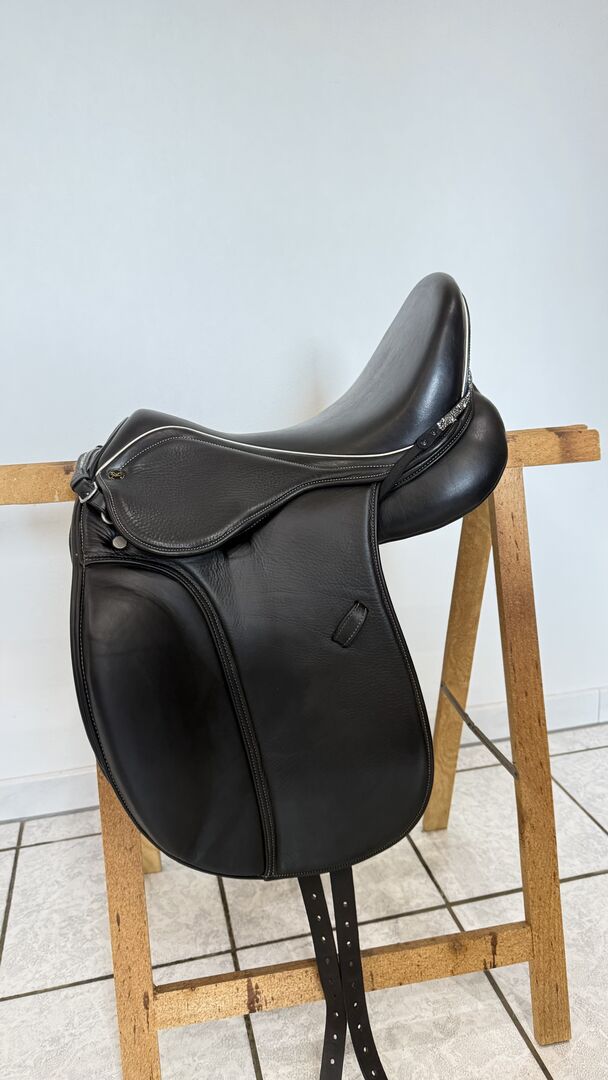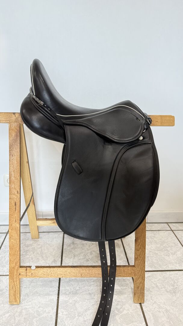 Het zadel maakt indruk met zijn elegante uiterlijk met exclusieve sierstiksels en biedt eersteklas ondersteuning en comfort dankzij het dubbele kalfsleer. Het is nauwelijks gebruikt en verkeert daarom in zeer goede, bijna nieuwstaat. Het leer is goed verzorgd, vertoont nauwelijks tekenen van slijtage en de bekleding is nog zacht en egaal.