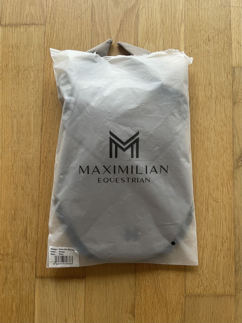 Twee keer gebruikte Maximilian Equestrian vliegenmuts crew in taupe. Geen defecten. NP 39,90€.