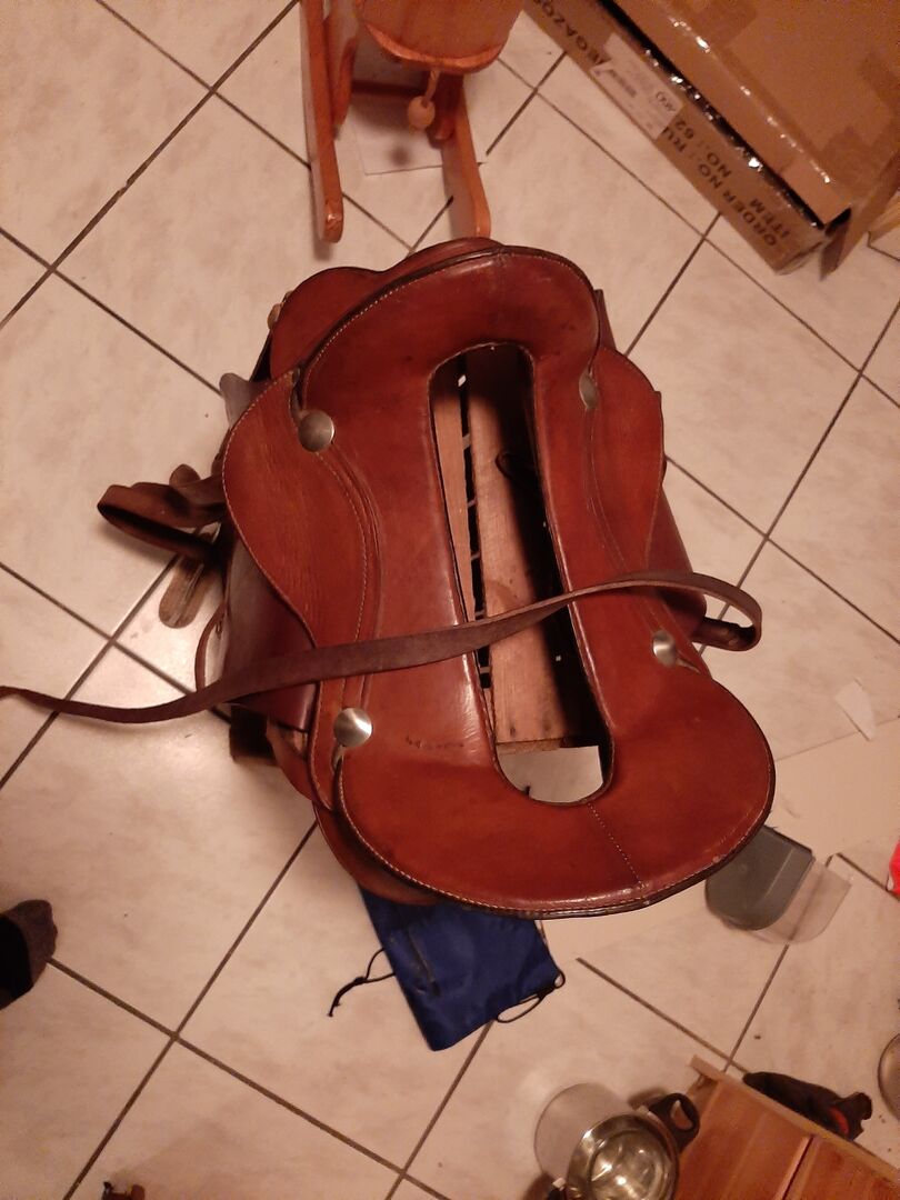 Mccellan zadel - Ik verkoop een Mccellan trail riding of militair zadel. Het zadel is oud en heeft wat lichte gebruikssporen. Stijgbeugels en singel zijn inbegrepen. Door de vorm van het zadel is er een goede schoudervrijheid en door de flexibele V-singel en de losse zadelkleppen past het zadel zich goed aan veel paarden aan.