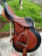 Merk Stübben: springzadel, singel, martingaal, stijgbeugels, stijgbeugels leer - Als nieuw, bijna niet gebruikt, martingaal is nieuw, singel 135, De prijs is voor het zadel en alle accessoires.