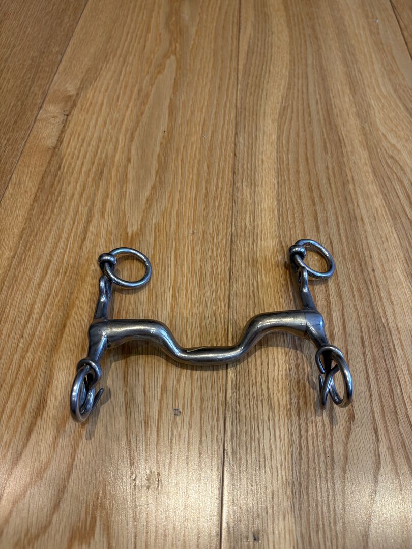 Metalen paardenbit in goede staat - Metalen paardenbit in goede gebruikte staat. Schoon en volledig functioneel met normale gebruikssporen. Geen beschadigingen.
