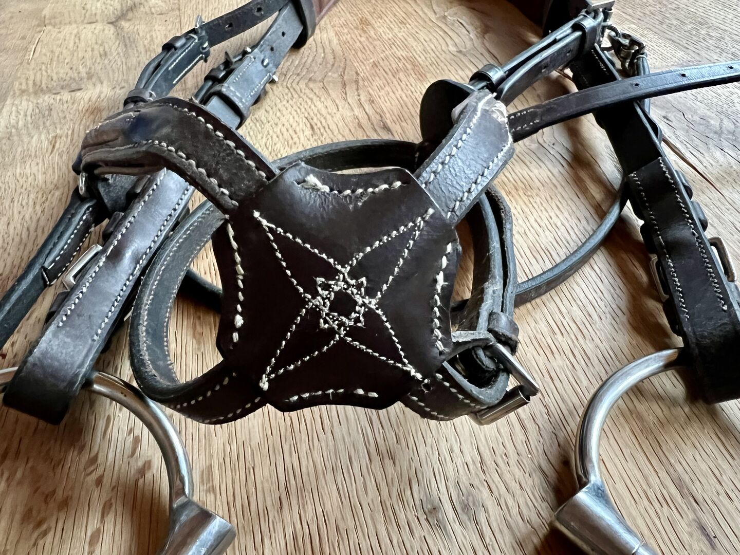 Mexicaanse kluif VB/Kolf - Te koop een hele mooie mexicaans leren snaffel in donkerbruin met lichtgekleurde stiksels incl. bit - maar zonder teugels.