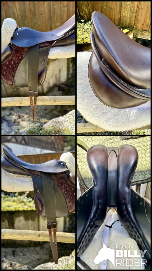 Militaire Passier II - Militaire Passier II Ik denk niet dat je het hoeft te beschrijven, iedereen die ernaar op zoek is kent het en aangezien het niet meer gemaakt wordt, is dit een buitenkans. Het zadel is echt als nieuw. Ik kocht het nieuw van Passier toen het nog beschikbaar was. Het heeft misschien drie keer op het paard gelegen en daarna heb ik een lange pauze ingelast. Het zadel heeft altijd een 18" zitvlak voor meer bewegingsvrijheid op het paard en heeft natuurlijk een mono flap. Het enige kleine minpuntje zijn de licht gebogen singelstriemen, die mijn hond helaas in zijn haar kreeg. Maar dat is geen probleem, als je er last van hebt, kun je de riempjes natuurlijk laten vervangen. Geen probleem. Het zadel is net opnieuw nagekeken en opnieuw bekleed. Het heeft wigvormige panelen en de originele 27,5 mm slokdarmbreedte, maar dit kan worden aangepast aan bijna elk paard. Schrijf maar als je vragen hebt.
