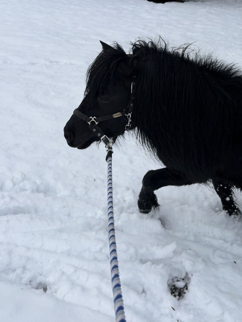Te koop is onze mooie, zwarte mini Shetland pony hengst "Klecks", geboren op 01.01.2018, met geldig Duits paardenpaspoort.
