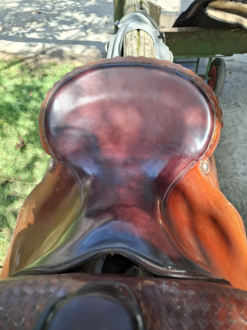 Montana Reiner nr.183 weergeven - Deze originele Classic No.183 gemaakt in Wyoming biedt alles wat het hart van een ruiter begeert! Dit zadel is een droom voor elke discipline, of het nu voor het werk in de arena is of voor uitgebreide trailritten, het biedt zijn ruiter een comfortabele en veilige pasvorm. Omdat het een showzadel is, heeft het zilverkleurige fittingen en conchos die niet vervagen. . Iedereen die iets weet over westernzadels weet wat een unieke kans deze No.183 is! Het combineert schoonheid en functionaliteit! Je bent ook welkom om me een bod te doen!