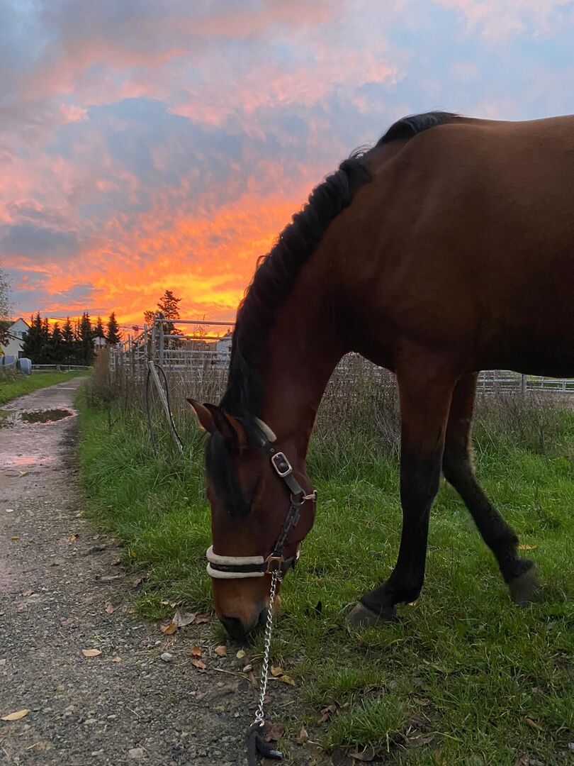 Hij kent honden en kinderen, die vindt hij geweldig, E omheining, tractoren en de gebruikelijke fratsen op een boerderij, kent koeien en is heel sociaal met merries, met ruinen gaat het om sympathie.