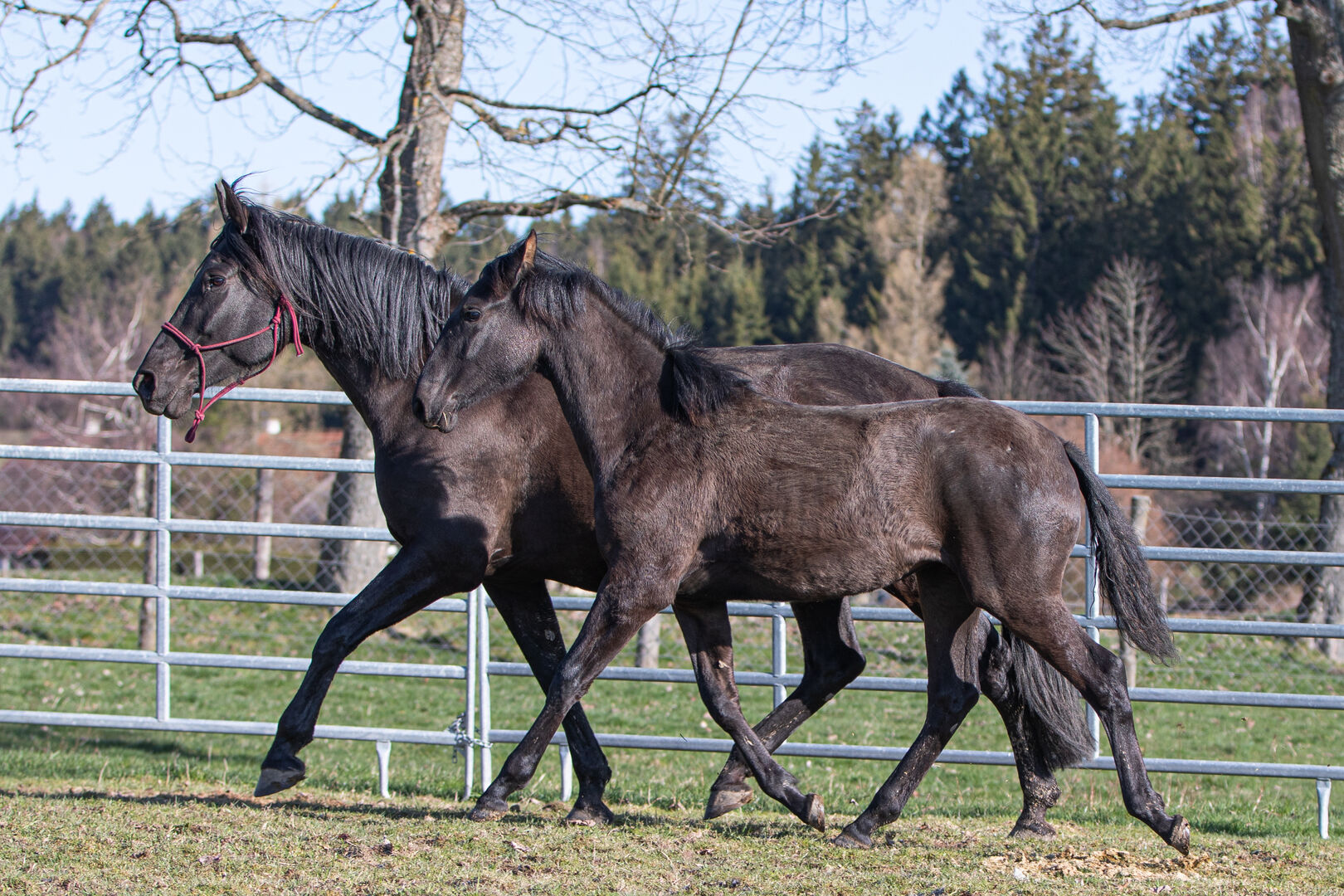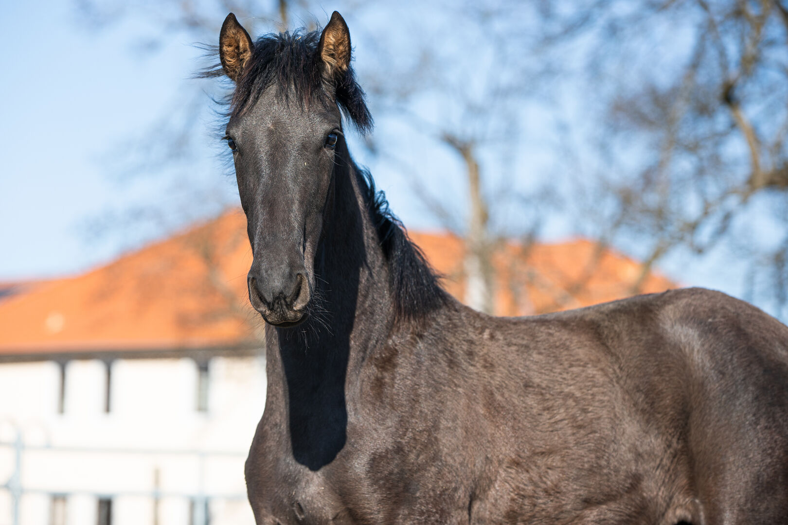 Mooie PRE merrie - Grandiosa NN Wunderschöne reinrassige PRE Stute, schwarz ohne Abzeichen, wird ca 165cm groß(auch für größere Reiter geeignet), geboren 6.8.2022, in ANCCE registriert, in der Herde aufgewachsen, sehr kluge und temperamentvolle junge Dame, natürlich regelmäßig entwürmmt, geimpft und vom Hufschmied behandelt. Vader BURAN NG - Rapphengst. Hij werd 12.5.2014 geboren op de Yeguada Las Negrillas.
