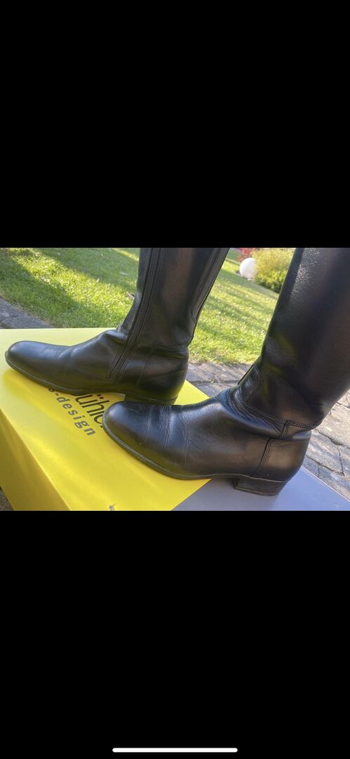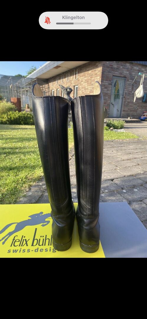 Nauwelijks gedragen rijlaars van Felix Bühler - Ik verkoop mijn rijlaars. Het is niet meer dan 3-4 keer gedragen, dus het is nog bijna nieuw en in zeer goede staat. De laars heeft maat 40. Het voordeel van de laars is dat er elastiek is aan de achterkant van de kuit, zodat de laars zich perfect aan de kuit kan aanpassen. Originele prijs was 269€.