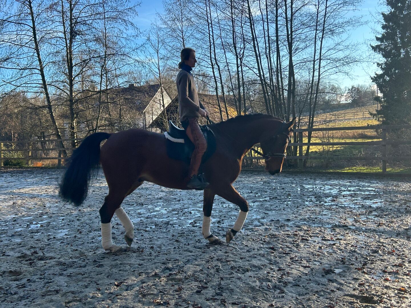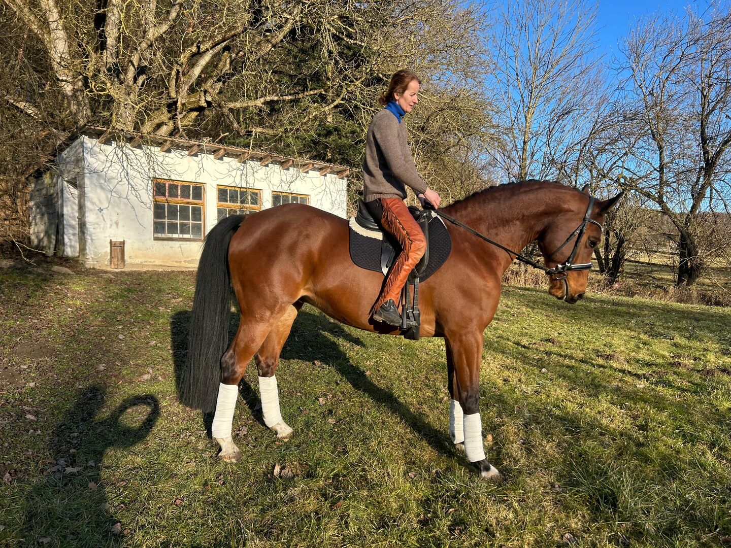 Deze bijzondere ruin maakt niet alleen indruk met zijn levendige en expressieve gangen, maar vooral met zijn geweldige karakter. Hij is altijd gezond geweest en is zeer compatibel in de kudde. Getraind en geplaatst in elementaire dressuur en elementair springen.