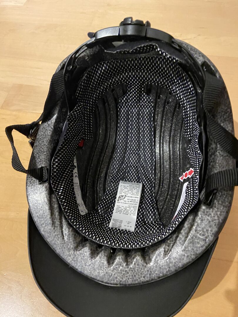 Der Reithelm ist ungetragen und nur kurz anprobiert:)