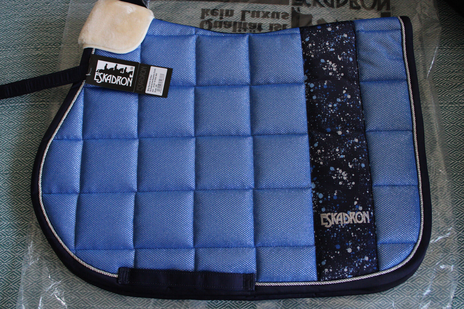 Nieuw! Eskadron Graffiti Glitter groot vierkant Azuriet VS !exclusief! - Te koop hier een absoluut nieuw zadeldek van Eskadron uit een exclusieve collectie uit Engeland.
