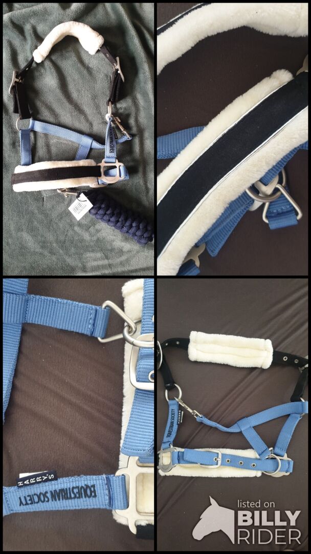 NIEUW Harrys Paard bont halster met touw pony - Nieuw halster met teddybont van het merk Harry's Horse. Het halster is op 3 plaatsen verstelbaar en heeft zacht teddybont op de hals en het neusstuk. Het halster is maat pony, was iets te klein voor mijn Duitse rijpony - zou zeggen meer geschikt voor kleine pony's / shettys of veulens. Was alleen op stal om te passen.