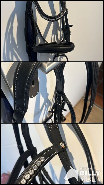 Nieuw hoofdstel voor paarden uit Waldhausen - Te koop is een nieuw paardenhoofdstel van Waldhausen: - X-Line Supersoft Joy - maat COB - zeer zacht leer - incl. nieuwe teugels - 1 steentje in de frontriem ontbreekt (uiterst links) Ik heb het hoofdstel nieuw gekocht en alleen op het paard gezet om te passen. Nieuwprijs is meer dan 90.