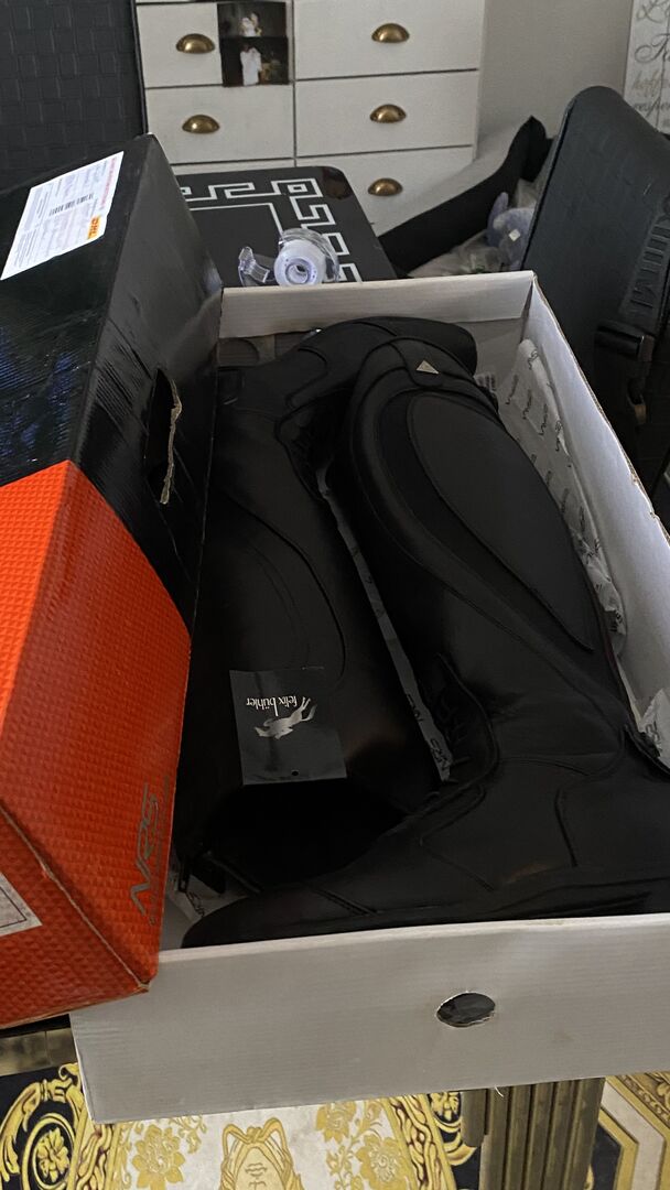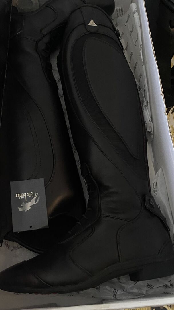 Nieuwe en ongedragen rijlaarzen in maat 40 en Protect-gilet in maat M op - Zeer mooie zwarte rijlaarzen maat 40 en een nieuw beschermvest van Felix Bühler beide items zijn nieuw zie foto's met label en prijs wat ze kosten . Ik bied beide items samen aan voor 100€ vaste prijs .