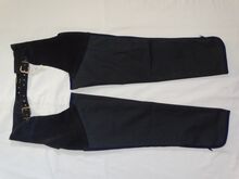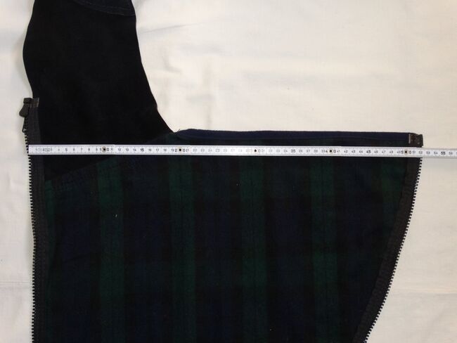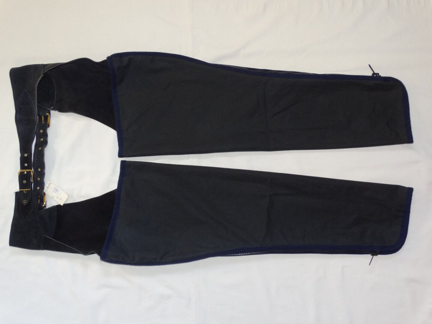 Nieuwe Glenwood lange chaps S regenchaps zwart met flanellen voering - Nieuwe Glenwood regenlaarzen Longchaps te koop. De bovenkant is van echt leer, de pijpen zijn van oliehuid. - Maat: S - Kleur: Zwart - Binnenkant: Flanellen stof - Beenlengte: ca. 68 cm - Breedte bovenbenen: ca. 52 cm - Beenbreedte onderaan: ca. 34 cm - Totale lengte: ca. 95 cm - Taillebandomvang verstelbaar van ca. 77 cm tot ca. 100 cm met 3 gespen (twee aan de voorkant, één aan de achterkant).
