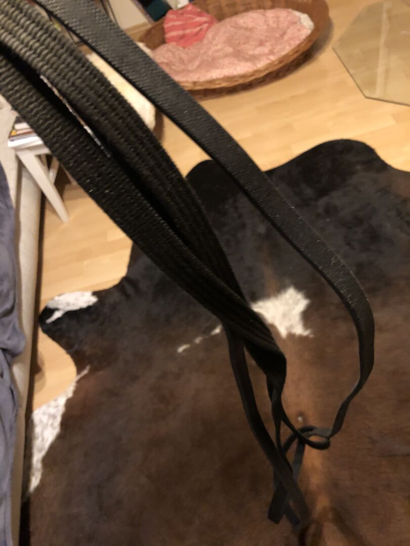 Nieuwe teugels met karabijnhaak - Verkoop 2 maal gebruikte lederen/ruiter teugels extra lang, elke kant ca. 230 cm.