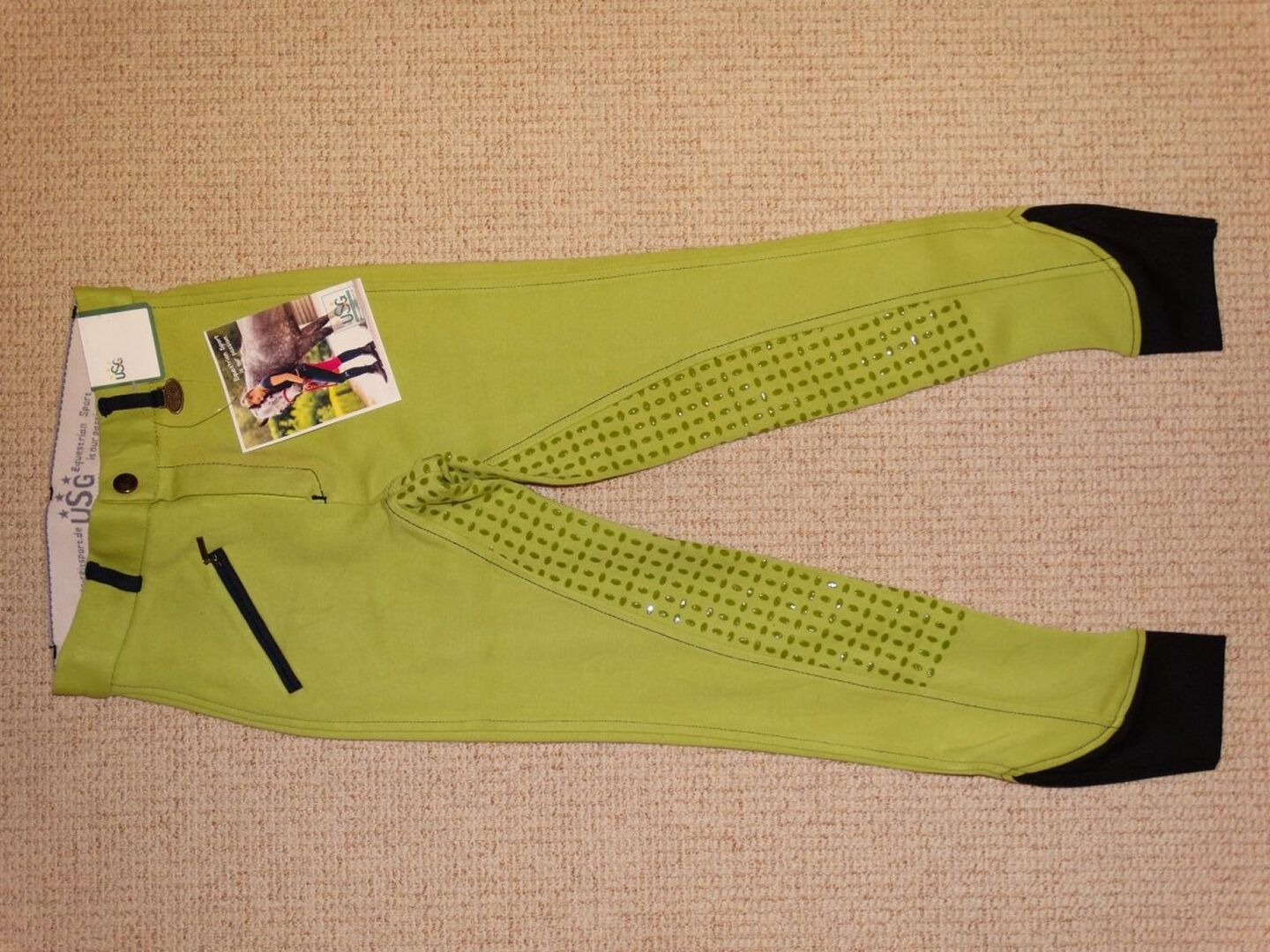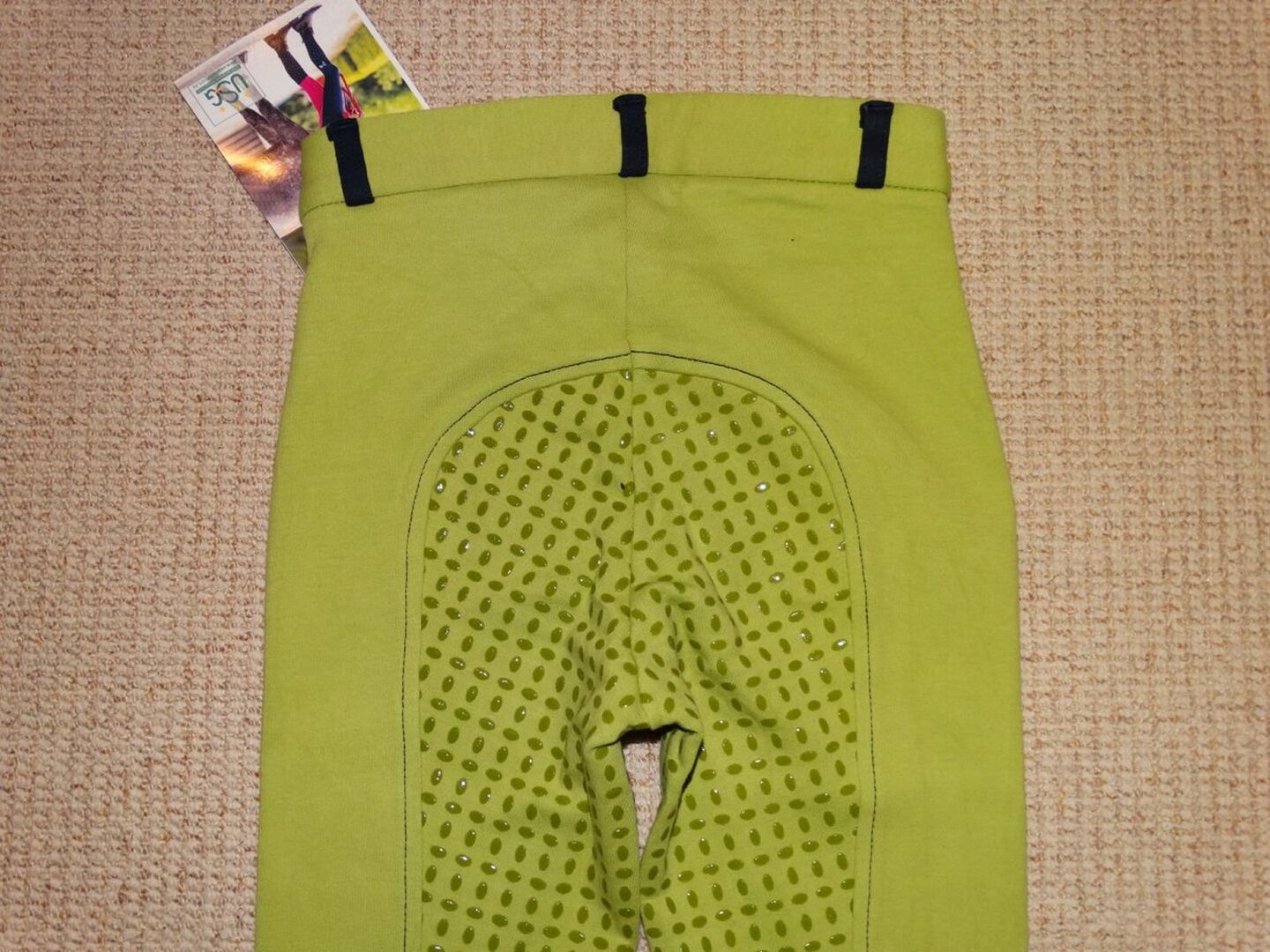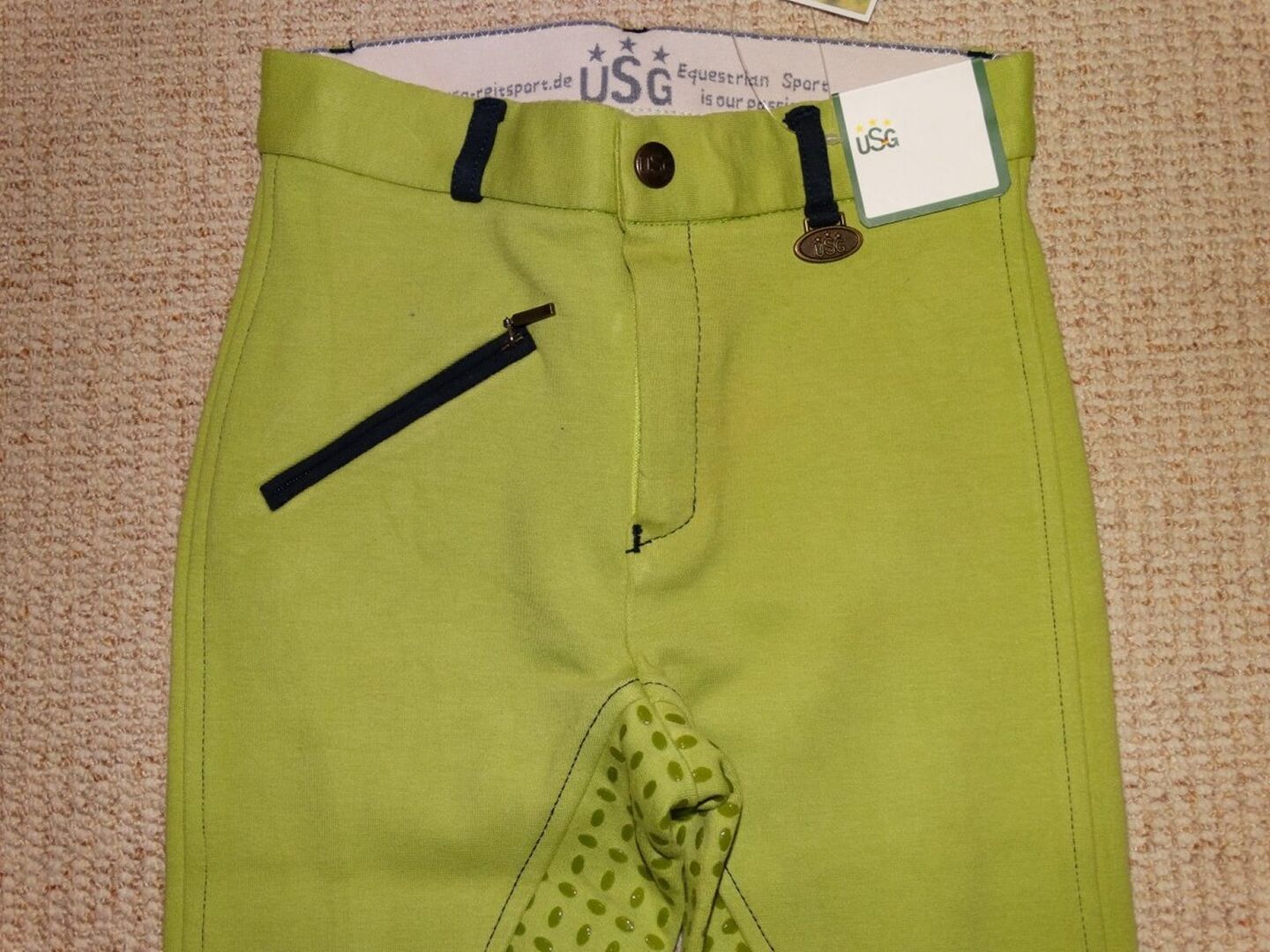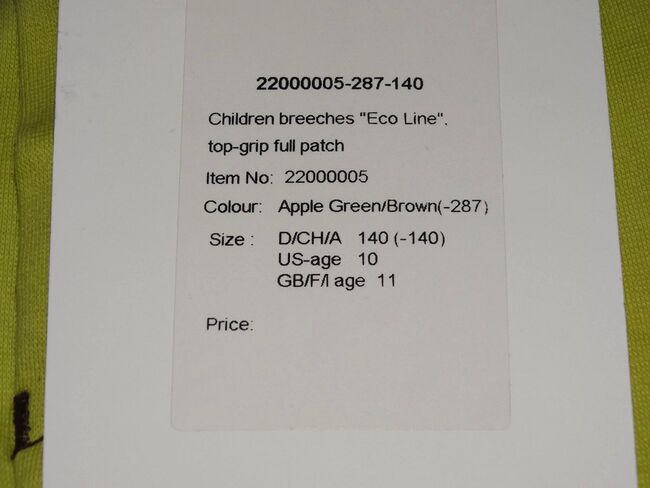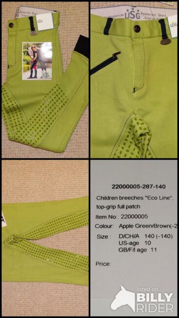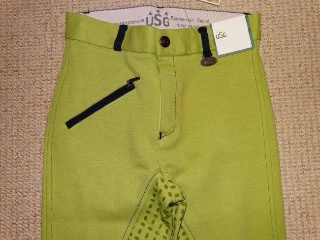 Nieuwe USG kinderrijbroek 140 siliconen full seat ECO-Line mintgroen NIEUW - Nieuwe USG 'ECO-Line' kinderrijbroek met siliconen vol zitvlak voor een vriend. Maat 140 / ca. 10-11 jaar. Mintgroen.
