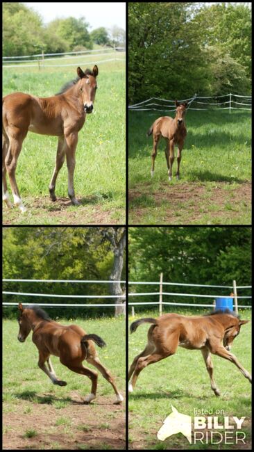 Nieuwsgierige, goed gebouwde Quarter Horse merrie - Plaats: 66916 Breitenbach Katie Be Gunshine - deze prachtige Quarter Horse merrie, geboren op 4.2025 met een geschatte eindhoogte van 148 tot 153 cm, verkent nu al nieuwsgierig haar omgeving en laat graag haar geweldige bewegingen zien. Katie is een knuffelig, onbevangen jong paard met vermogen. Correct gebouwd met sterke spieren. De merrie groeit op in een kudde met paarden van dezelfde leeftijd, kent het veulen ABC en is gevaccineerd en ontwormd volgens haar leeftijd. 5-panel n/n en IMM n/n. Haar afstamming laat het hart van elke reining fan sneller kloppen. Grays Starlight, Shining Spark, Dun It With A Twist, Peppy San Especial staan in haar pedigree. Haar vader, Walla Walla Gunshine, werd succesvol uitgebracht (LTE: 20000 $). Katie's moeder is een dochter van Twisten Two Step DR. Als je op zoek bent naar een geweldig jong paard voor wedstrijden en/of vrijetijdsritten, dan is Katie het juiste paard voor jou.
