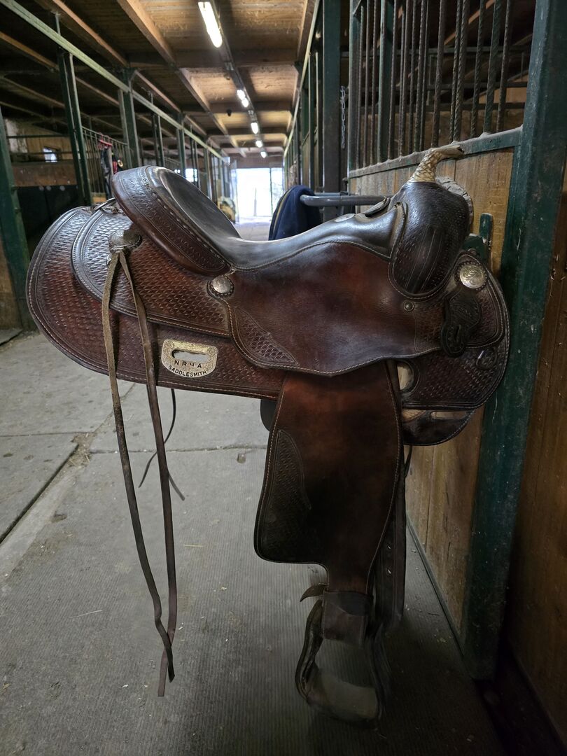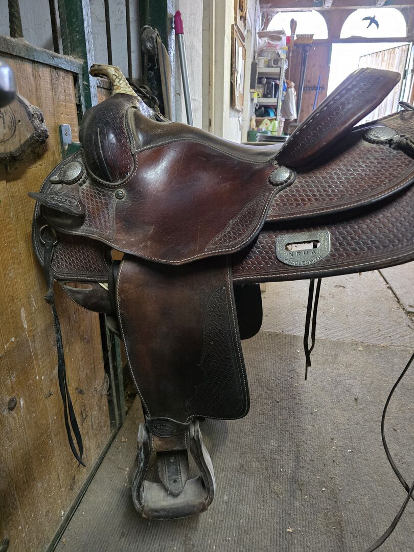 NRHA Saddlesmith Westernzadel / Reining - Meegenomen! Het zadel zat op een Haflinger. Bob Loomis Reiner Tekenen van slijtage maar in goede staat. Verzending ook mogelijk