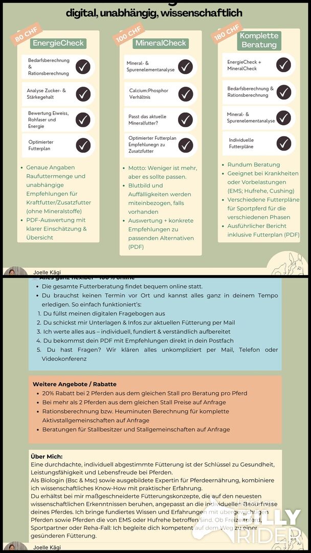 Holistische voedingsadviezen: Hier combineer ik de rantsoenanalyse met de mineraalvoerbeoordeling. Je krijgt uitgebreide feedback over de huidige voeding van je paard, inclusief een voederplan op maat dat is afgestemd op de huidige situatie van je paard.