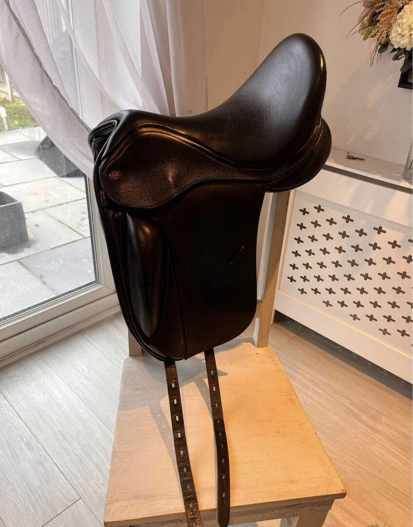 Stunning super comfy black dressage saddle , immaculately looked after and is as close to “as good as new” as second hand could get - owned for 7 months currently in a M/W gullet but fully adjustable - surface blocks for excellent leg position , hardly used , never dropped or neglected priced to sell as needs to go - open to sensible offers !!