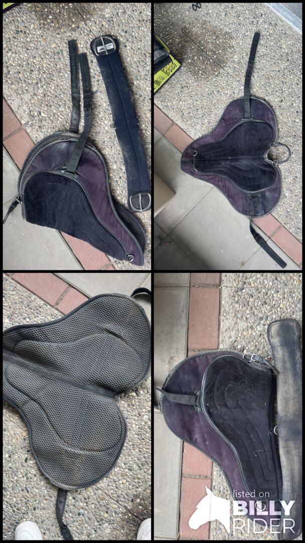 Onderlegger zwart - Ik verkoop een goed gebruikt rijzeil in de kleur zwart met een bijpassende singel. De singel is van Stonedeek in maat 32 (64cm tussen de twee onderste gespen).