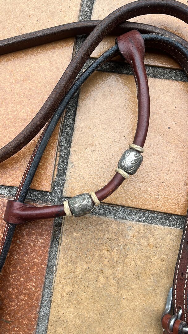 One-Ear Snaffle inclusief teugels - Verkoop een eenorige snaffel incl. teugels in bruin met mooie versiering ...