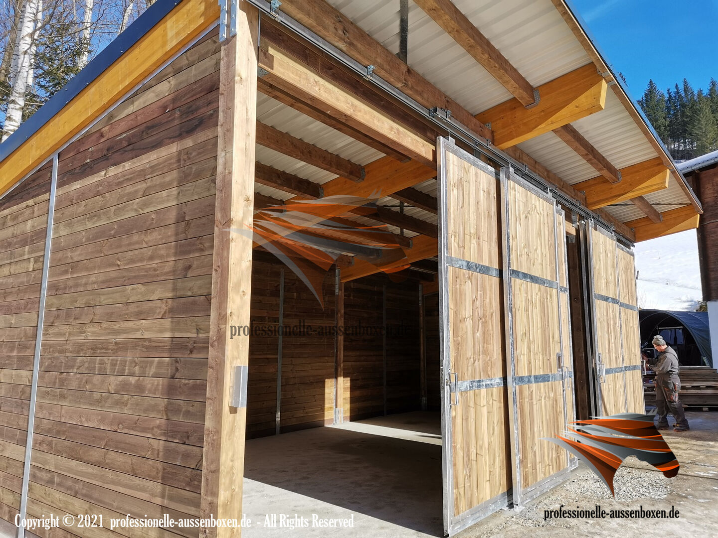 AUSSENBOXEN biedt hoogwaardige schuilplaatsen en overkappingen voor paarden, ideaal voor weiden, paddocks en voederplaatsen.