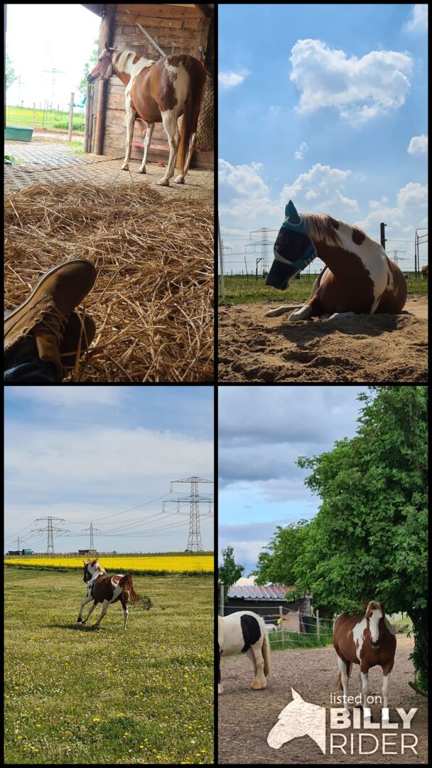 Er is een paddock met beschutting, stromend water en een buitenbak.