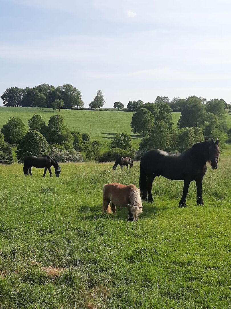 We bieden de hele dag weidegang in de zomer met vrije toegang tot de stal via de paddock (verhard met ECO rooster). De stalruimte is bedekt met rubberen matten. In de winter voeren we 24/7 goed hooi. De drinkbakken zijn verwarmd en de paarden kunnen vrij rondlopen in de stal en paddock. Kennismaking met de groep kan alleen tijdens het weideseizoen. Onze kleine kudde bestaat uit twee 22-jarige en een 13-jarige ruin en een mini-shetty merrie.