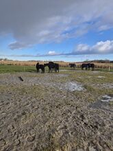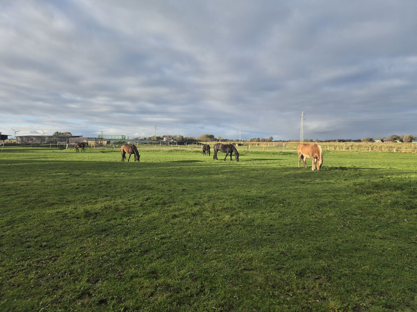 Persoonlijke wensen zoals longeren of rijden op het strand van Peter-Ording of gewoon wandelen hier op het terrein rond de boerderij kan geregeld worden.