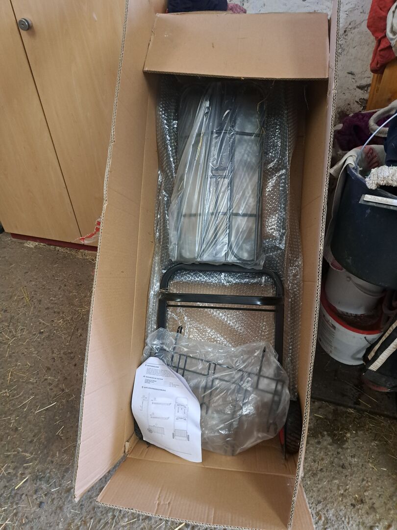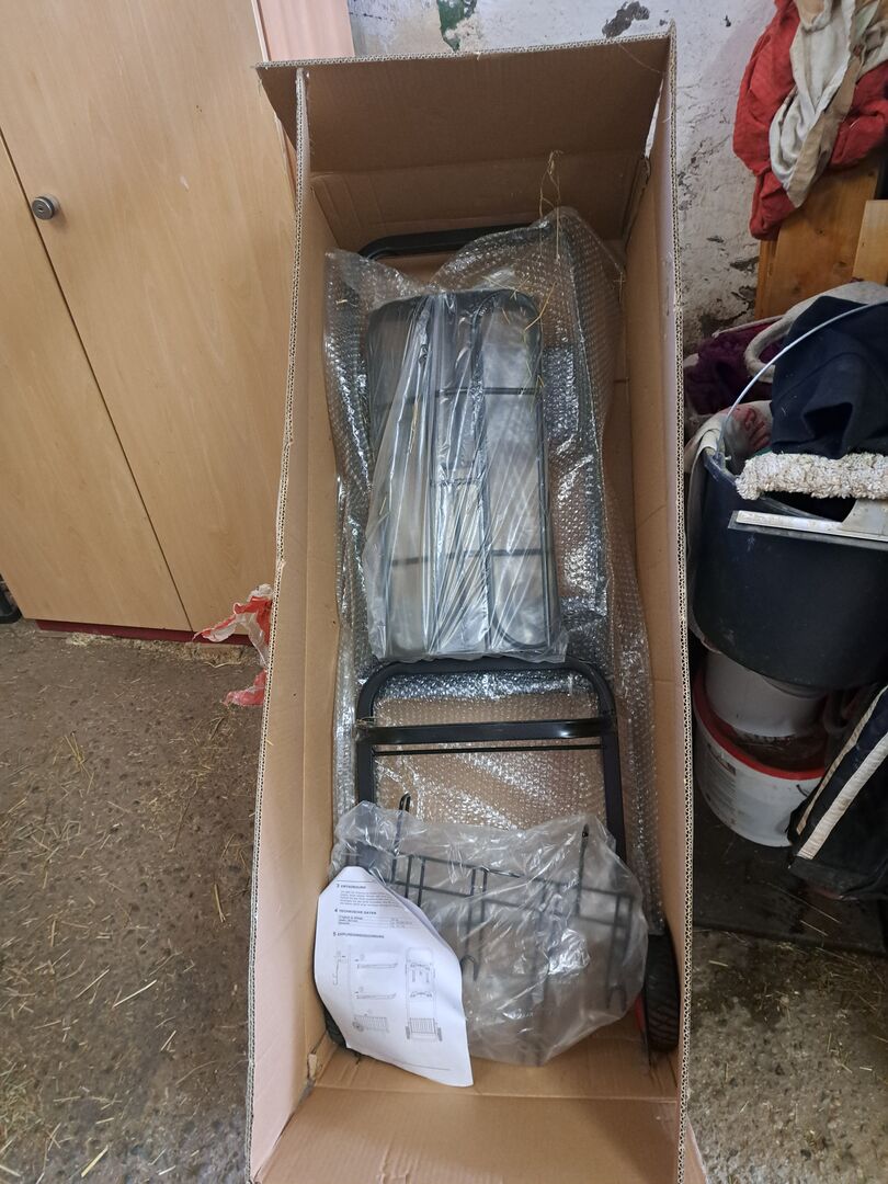 Oplegger Ascot origineel verpakt - Te koop een origineel verpakte zadeltrolley DEMA ASCOT helaas ontbreekt de mand maar deze kun je via Stabilo kopen voor ongeveer 40€ of een andere mand eronder zetten de afmetingen van de mand 46,5×31,5×18,5 cm de zadeltrolley is hij is geschikt voor alle zadels Afmetingen: BxDxH 50x68x128/ Gewicht 15,7kg/ Zadelhoudersteun 55x29 cm op de foto's hierboven zie je de originele verpakt onze oude daarnaast nog een originele foto als een aub alleen afhalen verzendkosten te duur .
