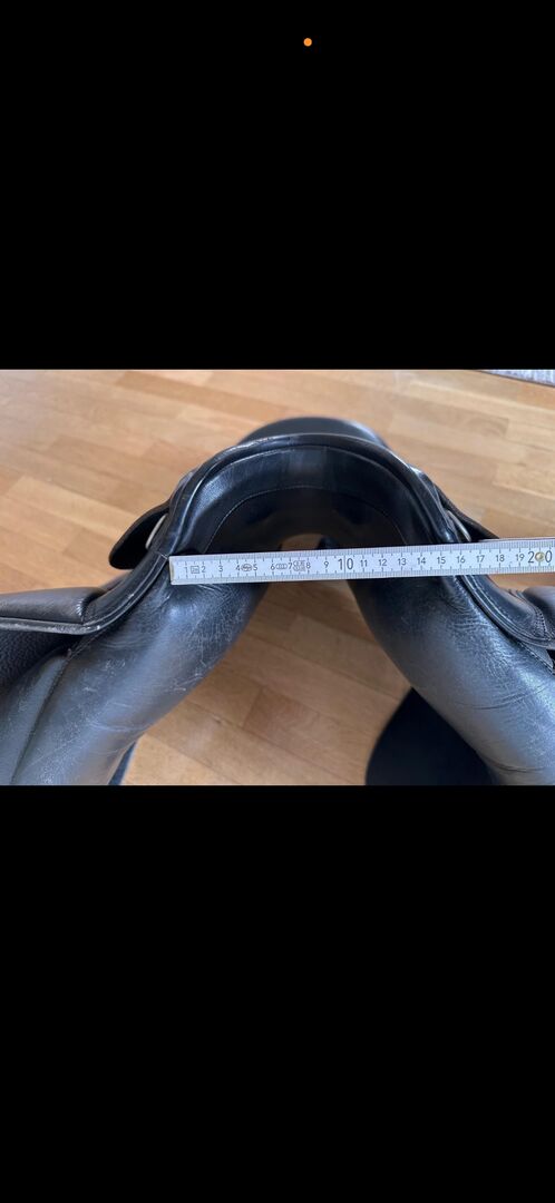 Volgens de zadelmaker is het geschikt voor paarden met een meer gewelfde rug. Het is koud verstelbaar en is door mijn zadelmaker verbreed in de slokdarmplaat om te testen.