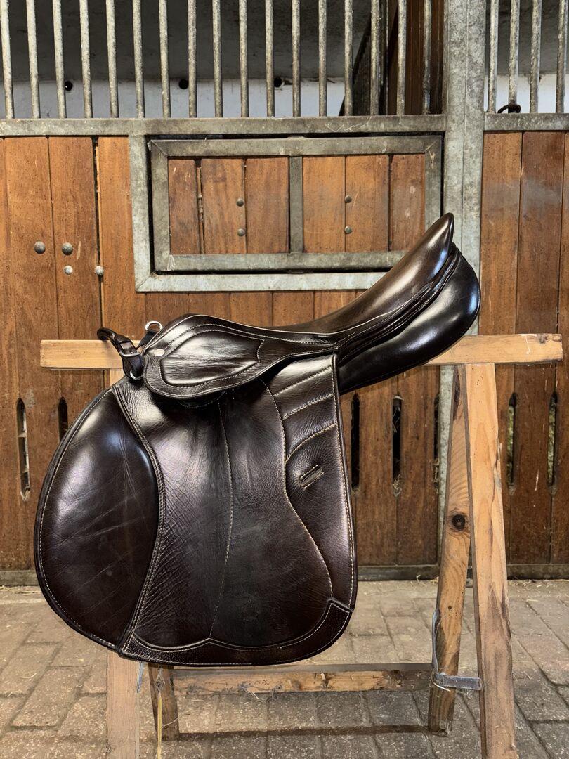 Een springzadel met maximale schoudervrijheid!!! Voor topprestaties zonder compromissen! Dit professionele zadel draagt de handtekening van succesvolle springruiters, maakt beweging van dichtbij voelbaar en maakt fijn afgestemde hulpen mogelijk. Springzadel Endeavour: -half-laag zitvlak -Latex wollen panelen -Kleur: bruin premium zacht olieleer met witte contraststiksels -De kamerbreedte is individueel instelbaar en het slokdarmsysteem kan worden aangepast. -Kussenbekleding voor meer schoftvrijheid. Verzonken boom- en slokdarmsysteem voor meer statische bewegingsvrijheid in de schouderpartij van je paard! -FSHL kopstuksysteem (vrij-schouder systeem)