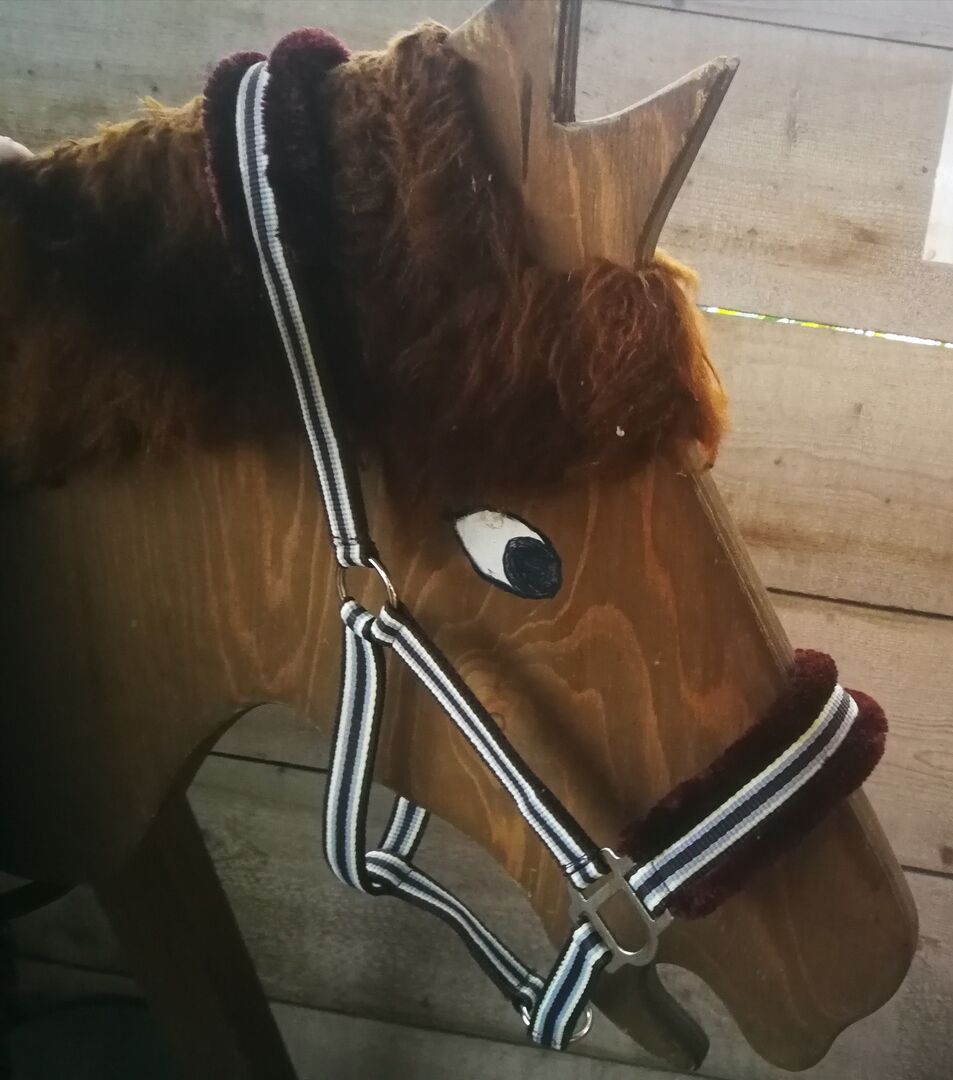 Paarden halster - Alleen gebruikt als een rij-maatje. In zeer goede staat. Nekband en neusriem gevoerd met synthetisch bont.