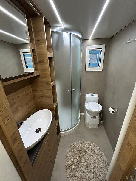 TV SAT ? systeem volledig automatisch, airconditioning (230 volt) verwarmings- en koelfunctie, ramen in het woongedeelte met horren en verduisteringsgordijnen, groot dakraam