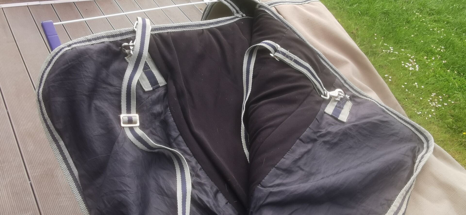 Paardendeken 135cm, winterdeken, outdoor deken - Te koop is deze winterdeken van Horse Friends met 200g, maat 135cm. Heeft maar een paar keer op mijn quarter gestaan. Komt vers van de stomerij. Item is gebruikt, maar zonder scheuren of tekenen van slijtage. Helaas heb ik de deken maar met één sluiting ontvangen in plaats van 2 (zie foto). De deken kan echter ook op deze manier worden gesloten of gewoon worden vastgehaakt met een karabijnhaak. Er zitten nog een paar losse haartjes op de deken. Voor de rest is de deken intact en schoon.