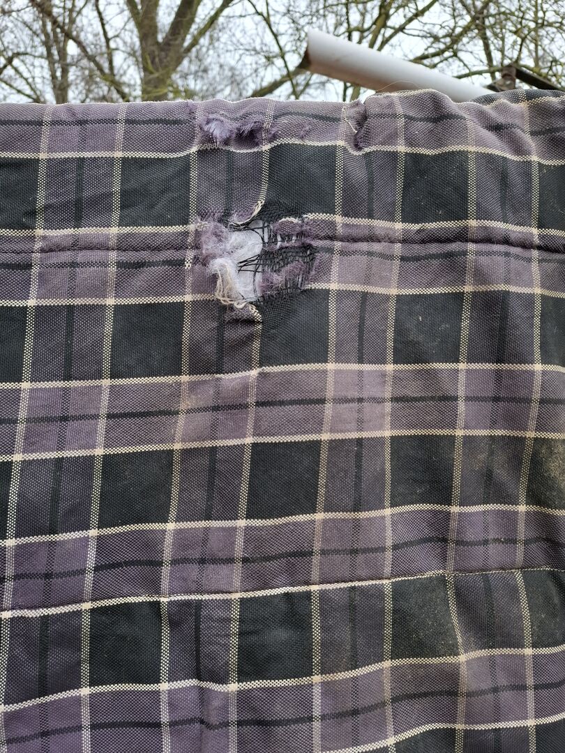 Paardendeken - Paardendeken ca 200gr,145cm de deken heeft een paar kleine scheurtjes, maar die storen niet(zie foto's) de deken wordt ongewassen verkocht, ophalen in 68 Oberhausen of Philippsburg. Geen PayPal beschikbaar alleen bankoverschrijving Geen garantie of retournering. Plus verzendkosten door DHL. Of doe me een prijsvoorstel