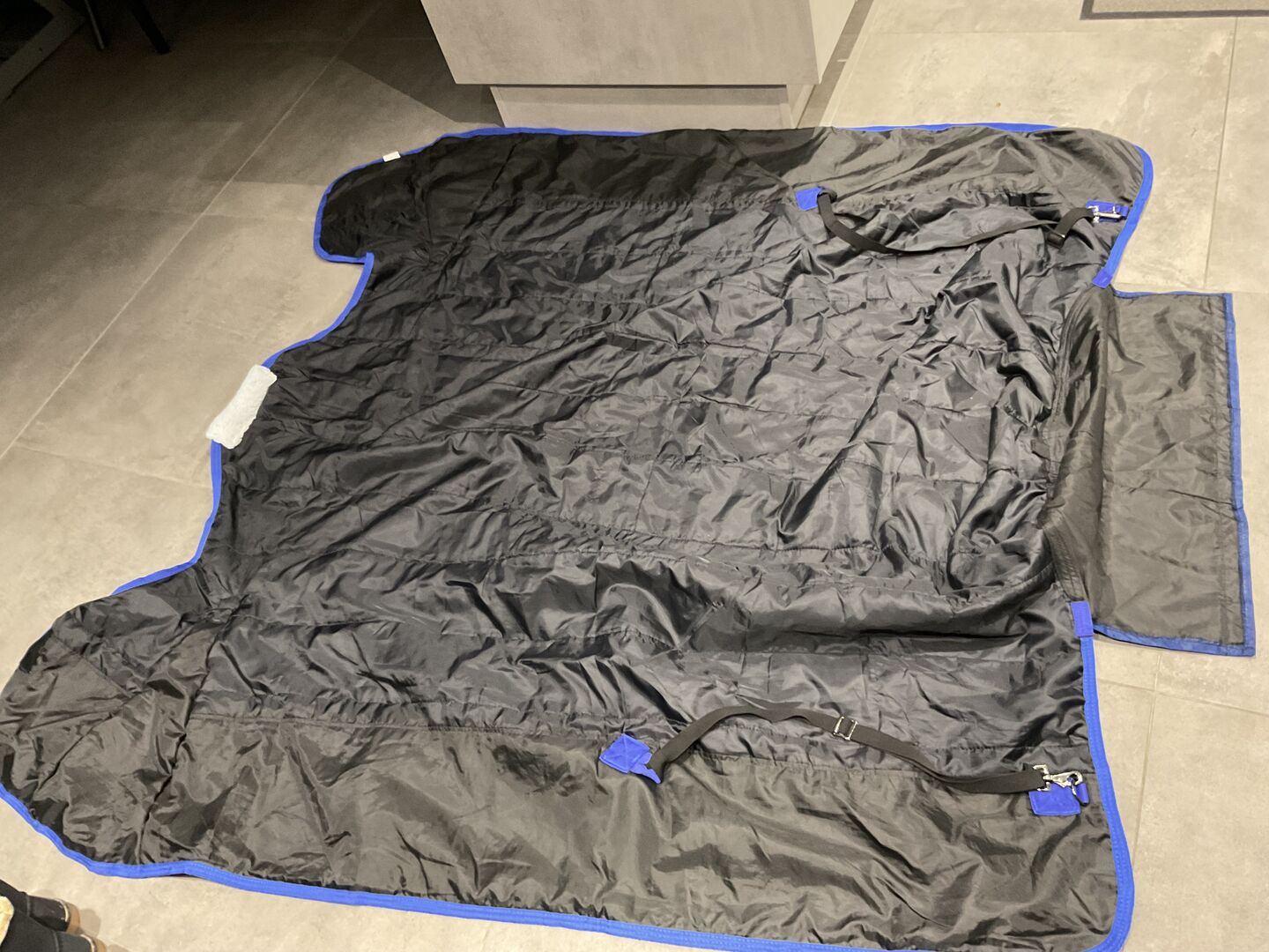 heeft een hoge halsuitsnijding en beschermt het paard optimaal tegen nattigheid en kou het synthetische materiaal heeft een waterkolom van 3000 mm en een scheurweerstand van 600 D, dus zware regenval of een wilde stoeipartij in de wei is geen probleem om te voorkomen dat de deken wegglijdt, heeft het een 3-voudig verstelbare, dubbele borstsluiting, kruissingels op de buik, beenriemen en een staartkoord de staart is extra beschermd met een staartflap de deken is gevoerd bij de schoft voor een comfortabele pasvorm en is ook ademend de deken heeft niet alleen veel functionele functies, maar heeft ook visueel veel te bieden met zijn bloemversieringen en Imperial Riding-letters Materiaal