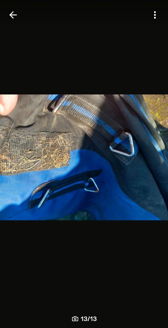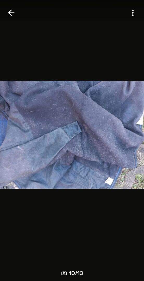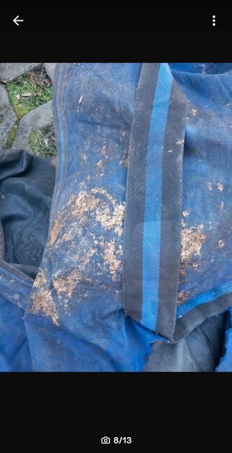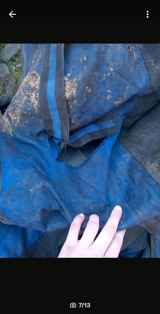 Paardendeken polar fleece 145 met halsdeel - Deken met poolfleece in 145 met afneembaar halsgedeelte. Het halsgedeelte is maar één keer op het paard geweest. De deken heeft helaas een scheur in één singel (zie foto), maar kan gemakkelijk met de hand of met een naaimachine worden genaaid& de karabijnhaak van één beenriem is gebroken (zie foto). Nieuwe beenriemen zijn beschikbaar&kunnen gekocht worden voor 10€. Verder geen schade. De deken is van RL24 en de originele prijs of aankoopprijs was 69,95€. Stuur me prijsvoorstellen. Privéverkoop, dus geen retour, garantie of waarborg. Bij voorkeur ophalen in RE-Nord of verzending tegen betaling van de kosten mogelijk. Onderhandse verkoop, dus geen garantie, waarborg of retour.