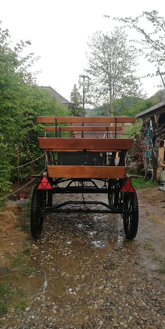 Paardenkoets met handrem - Verkoop lichte paardenkoets voor 4 personen. Twee-in-hand, ook mogelijk als een-paards koets. Goede staat, schijfremmen achter + handrem. Onmiddellijk klaar voor gebruik.