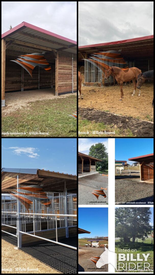 AUSSENBOXEN biedt hoogwaardige schuilplaatsen en overkappingen voor paarden, ideaal voor weiden, paddocks en voederplaatsen.