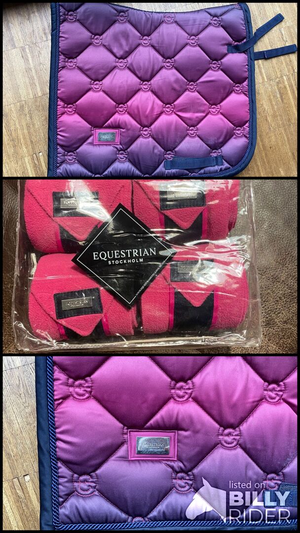 Paardensport Stockholm - Ik bied een set dressuurzadeldekjes en bandages aan. Lichte tekenen van slijtage aan de linkerkant, maar niet merkbaar op het paard. Het singelgedeelte is in topconditie. De bandages zijn iets ingekort, maar passen nog steeds op een warmbloed.