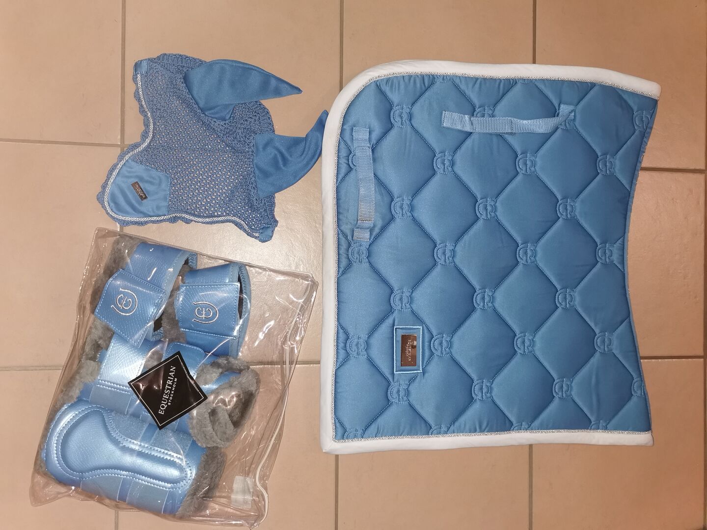 Paardensport Stockholm Set *NP 325€* Parisian Blue * Zadeldek DR FULL & fly muts & beenkappen S+M - Ik verkoop deze geweldige set van Equestrian Stockholm