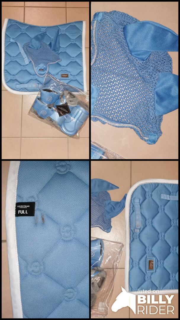 Paardensport Stockholm Set * Parisian Blue * Zadeldek DR FULL & fly muts & beenkappen S+M - Ik verkoop deze geweldige set van Equestrian Stockholm