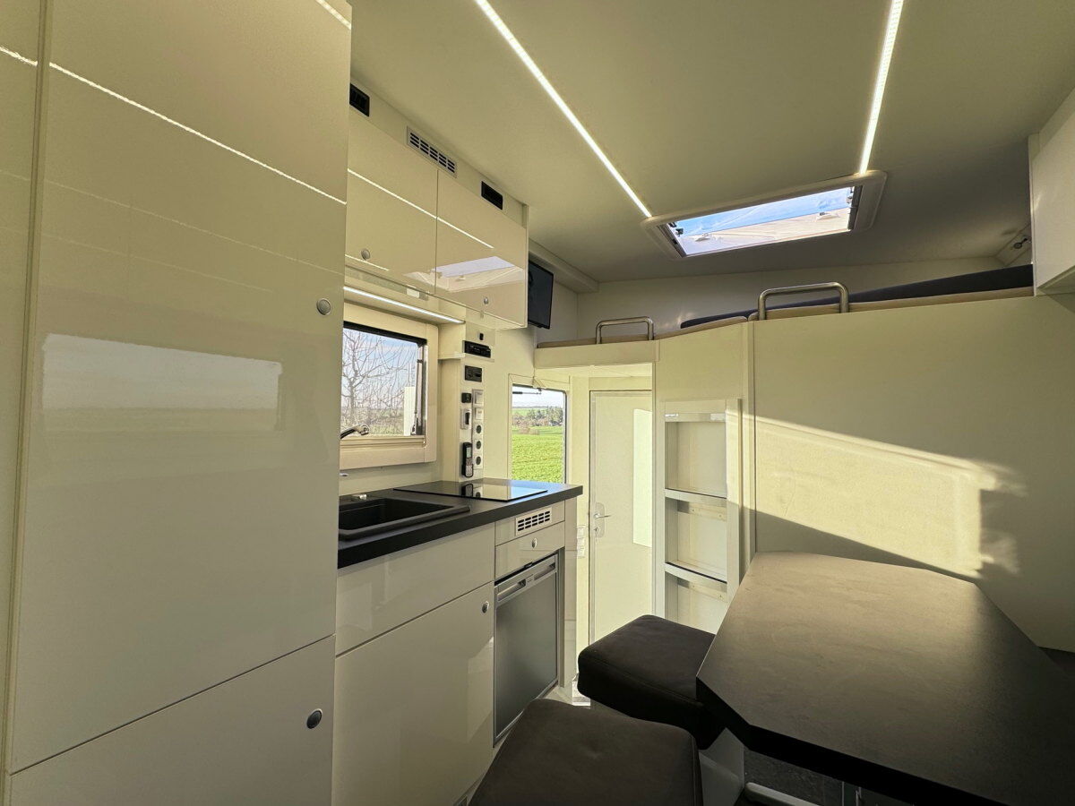 Compact woongedeelte met veel bergruimte - Leefruimte voor maximaal 4 personen - L-vormige zitgroep kan worden neergeklapt tot bed - 2 slaapplaatsen in de bovenste slaapcabine, met dakluik - 1 slaapplaats boven de badkamer, met dakluik - Badkamer met douche, WC, wastafel, spiegelkast, handdoekradiator - Keukengedeelte met kookplaat, gootsteen, koelkast - Kledingkast - Veel bovenkasten - 2 extra krukjes met opbergruimte - TV met automatische SAT-antenne - Eberspächer 4Kw diesel standkachel - Airconditioning en elektrische verwarming van Dometic - 4x 200Ah AGM accu's - 3000W omvormer - Extra opladen van de startaccu's - Extra opladen van de boordaccu's tijdens het reizen - PV-systeem met 800 watt - Warmwaterboiler van 15 liter - 400 liter schoonwatertank - 200 liter vuilwatertank - Overwinterd watersysteem (tijdens gebruik) -Momenteel beschikbaar -Bezichtiging alleen mogelijk op afspraak Prijs is €199,000 bruto netto zonder BTW -Inlichtingen op 01606106131--00491606106131