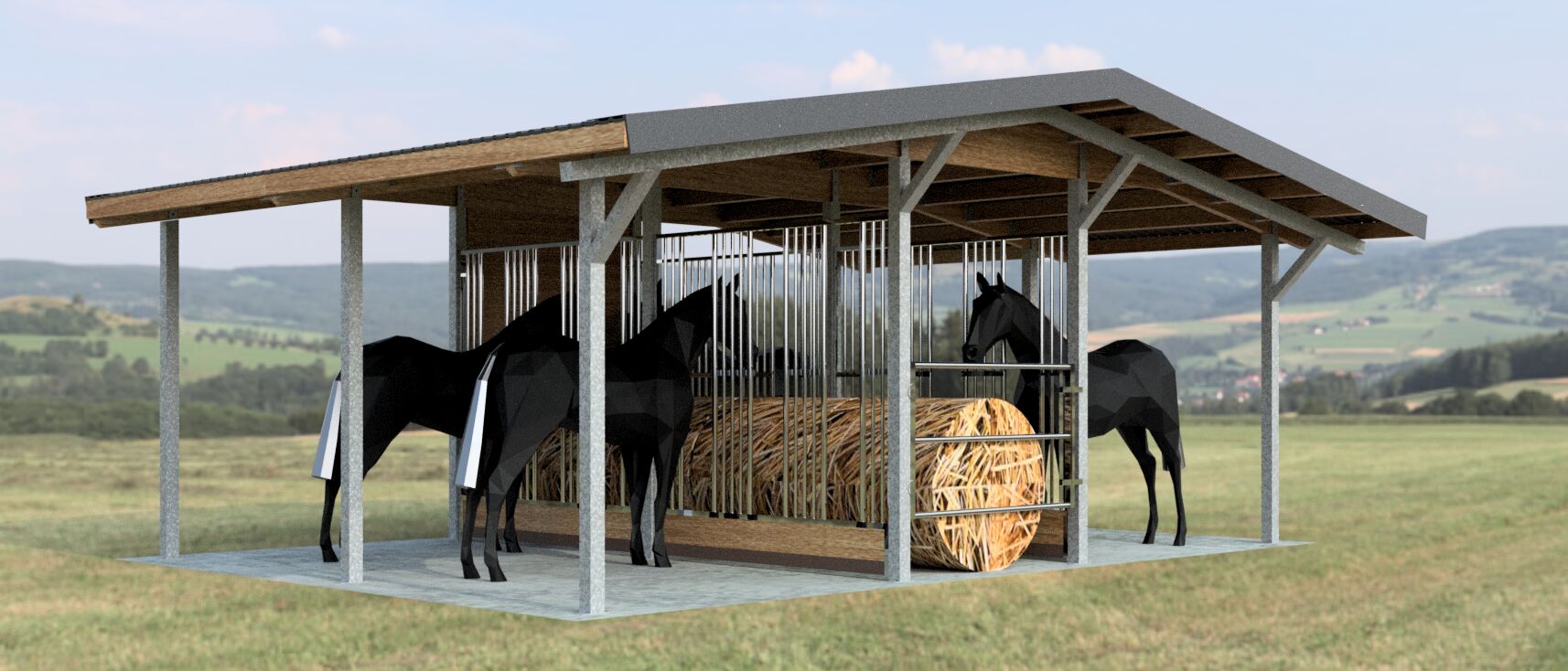 paardenrek | hooiruif | voerrek | voerhek | paardenvoer | open stal | paardenhouderij | paardenstal bouwen | paardenbox