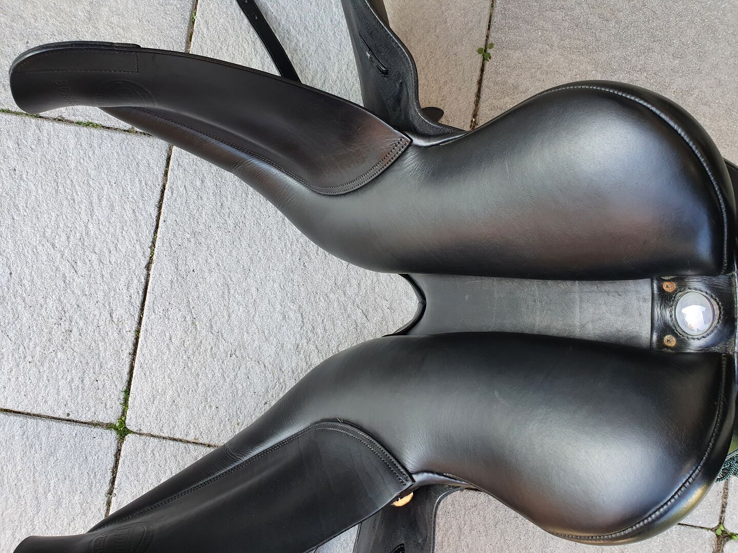 Paardenzadel - Dit is een gebruikt Bates dressuurzadel.het is in zeer goede staat zoals te zien is op de foto's. Het zadel is 17,5", de slokdarmbreedte is 31", de slokdarmbreedte is normaal (blauwe slokdarm zit momenteel in het zadel, een witte slokdarm wordt ook bijgeleverd), het zadel is een kwart jaar geleden opnieuw gepolsterd.